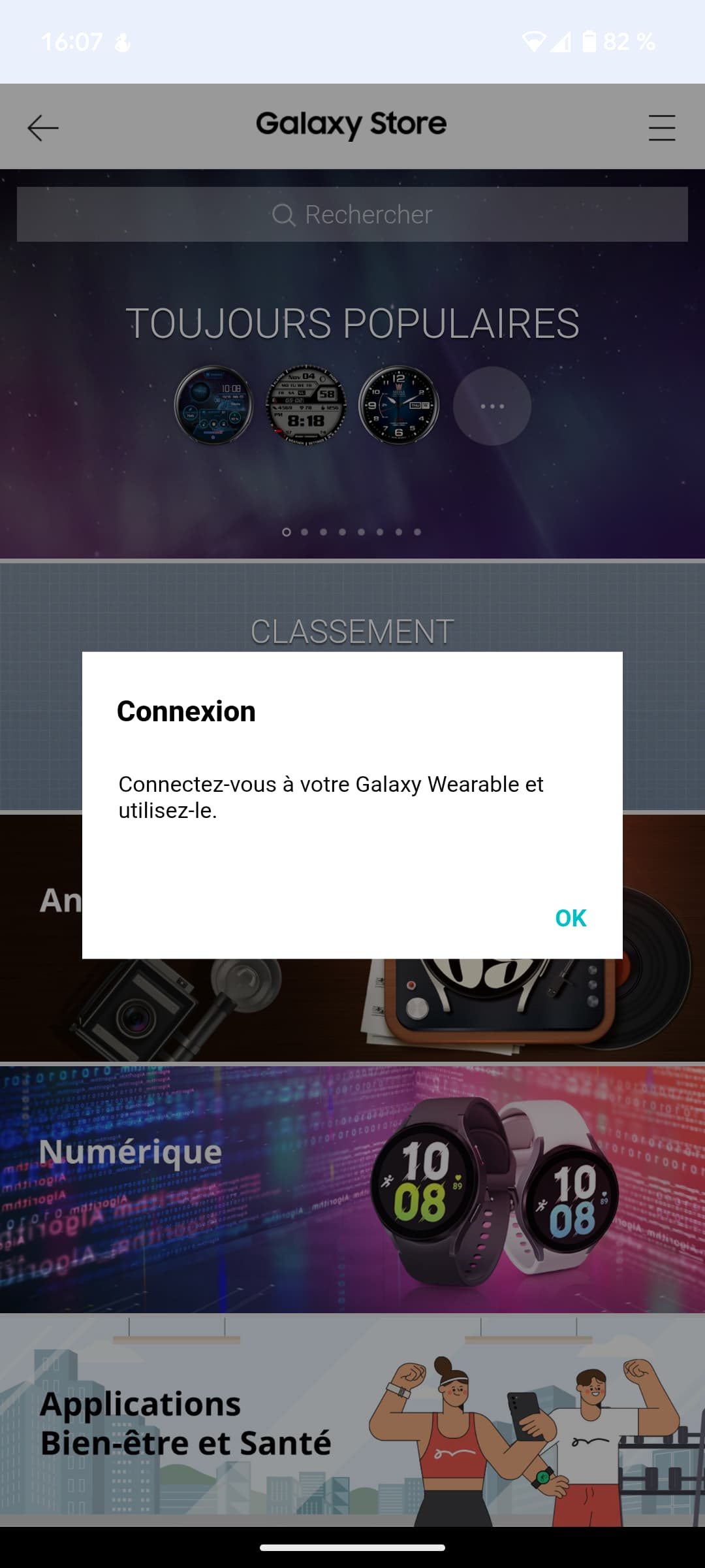 Quand je suis passé sur un Pixel 6, on se retrouve avec un ersatz de store disponible en version Web depuis l'application de gestion de la montre. Pour faire simple, quand on voulait installer une application, il ouvrait une page web dans l'application Galaxy Weareable.